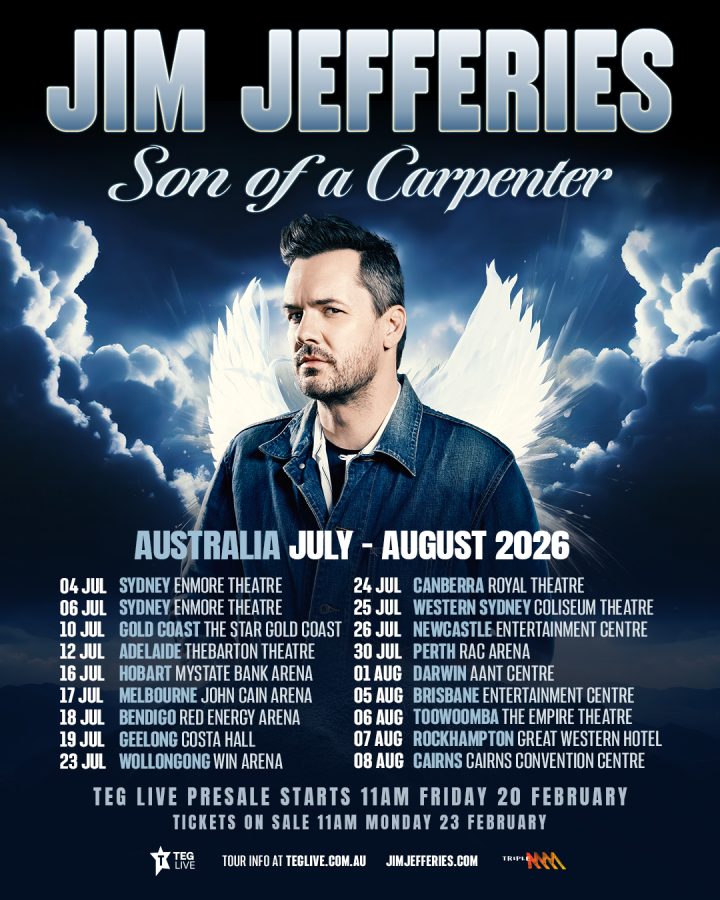 Australia’s global comedy heavyweight, Jim Jefferies will bring his internationally acclaimed Son of a Carpenter tour home in 2026 for a huge run of dates across the country, hitting arenas and theatres this July and August.